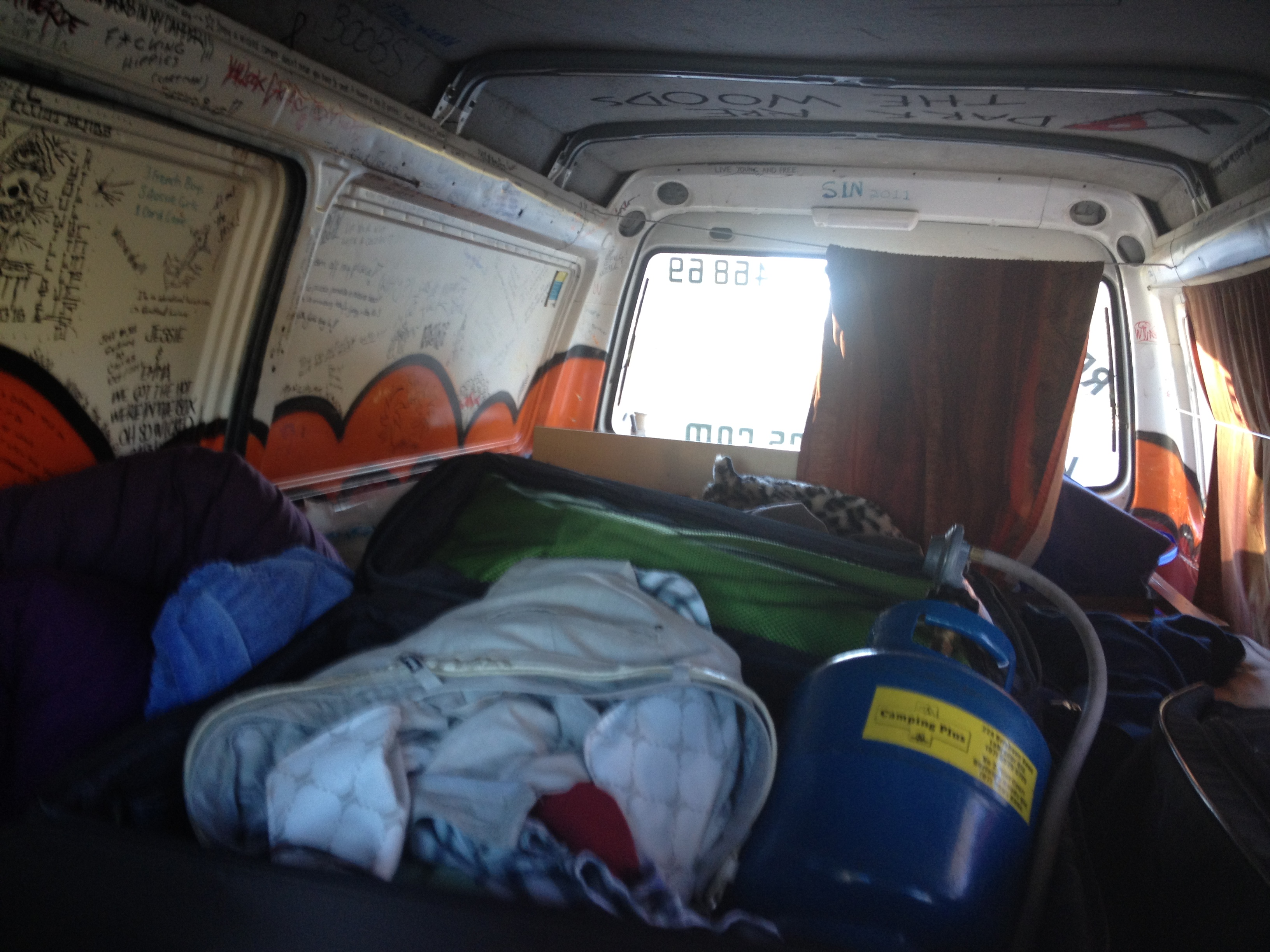 Wicked vans are awesome for their cheap price and rebellious paint jobs. But the thing that really struck my fancy was the handwritten graffiti all over the inside of the van. It seemed like every backpacker who’d passed through that van had scribed something. There were at least five quotations signed by a Pouick, and my boyfriend and I seemed to keep finding more. For the whole week, one of us would be firing up the barbecue or doing the dishes, and the other would yell from inside, “I FOUND ANOTHER POUICK!”