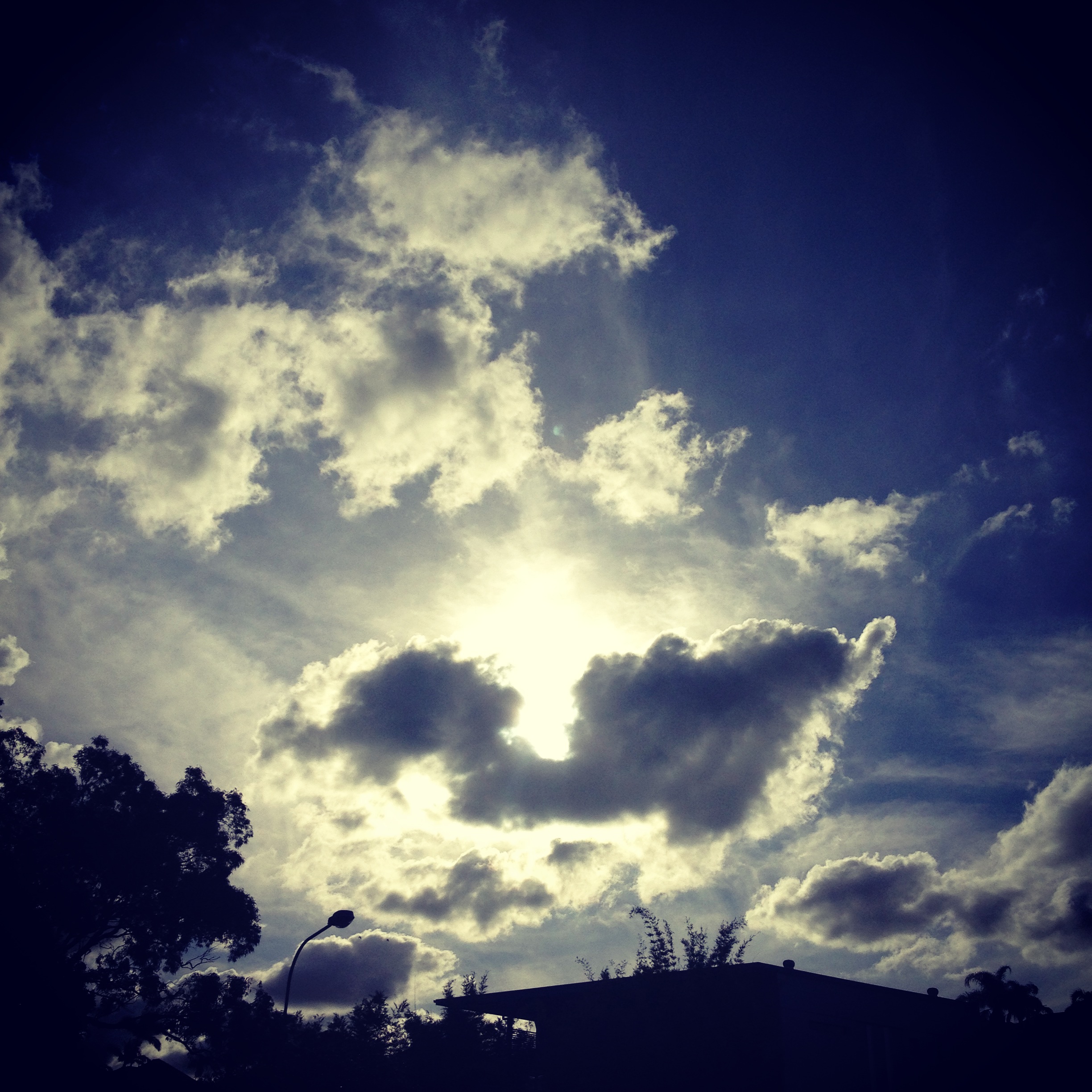I don’t get to places quickly anymore. I don’t have the luxury of leaving whenever I want. I have to wait for buses. I have to wait. I have to find a spot in the shadow of the bus-stop shelter where the sun doesn’t hit me at full noon but where I can still watch the curve of the road for the oncoming bus. I sit in the shade of an old tree, on the cement border of a garden, on the flat grass next to the bench. I sit and I wait. I watch the road. I check my phone. And if I’m not too busy typing or texting or trying to find a tune that perfectly fits my mood, I look up at the sky. I often look at the clouds, watch them – they’re actually moving. I see them moving. I can watch one cloud shift from the left of the sky to the right, scudding past and changing shape and morphing into something completely different but equally beautiful and I question everything I think about the nature of reality. I ponder god. I ponder life. I stare at the sky until the sun is burned in starbursts onto my vision, and then the bus is heaving into the stop and I’m stumbling up to flag it down.